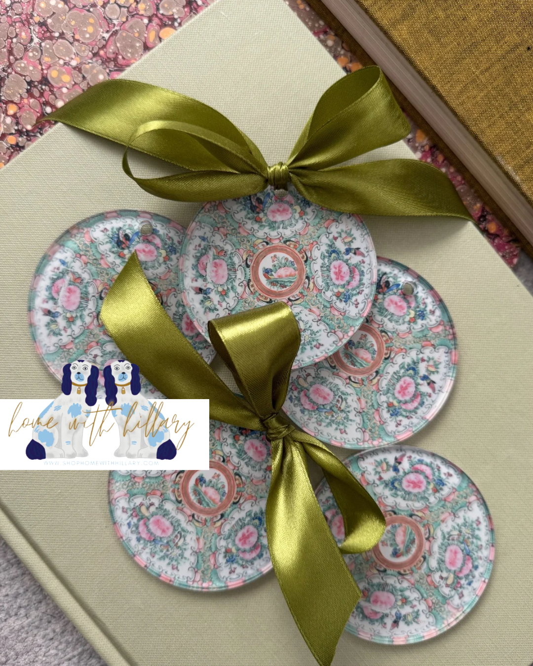 We are beyond thrilled to announce our partnership with Home with Hillary on bringing little pieces of Vintage magic to your trees and wreaths this year! Crafted of a heavy acrylic and inspired by the Antique Rose Medallion plate wall hanging in the heart of my home. These pieces blend beautifully with any Holiday decor style and bring just the right touch of vintage whimsy to your space.